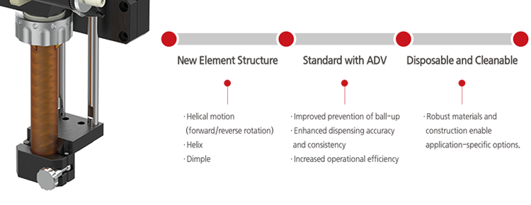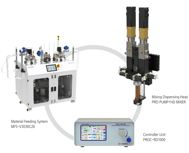 A combination of the PRO PUMP, capable of ±1% metering accuracy, and a Hybrid Dynamic (HD) mixer driven by a high-speed servo motor. Ensures uniform mixing even for high-viscosity materials.