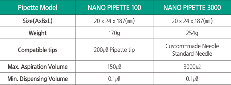The Nano Pipette is an electronic pipette applicable to various industrial fields including pharmaceuticals, biotechnology, food, and cosmetics. It is particularly effective for biosensors, glucose sensors, and Liquid Handling Stations where contamination prevention is essential.