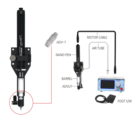 When using the NPC-10V, the Nano Pen and ADV can be configured as an interlinked system.