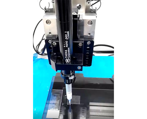 By integrating the Nano Pen and ADV (Anti-Drip Valve, ADV7), materials containing fillers (low to high viscosity) can be dispensed in ultra-small volumes through needles with an inner diameter of Ø0.5mm or less.