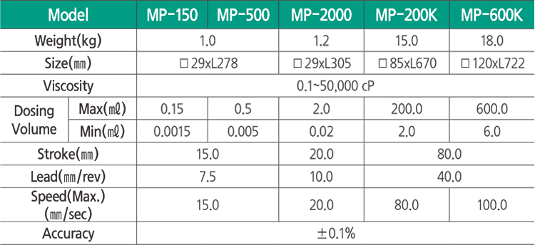 Stable dispensing from ultra-low volume (MP-150) to high flow rates