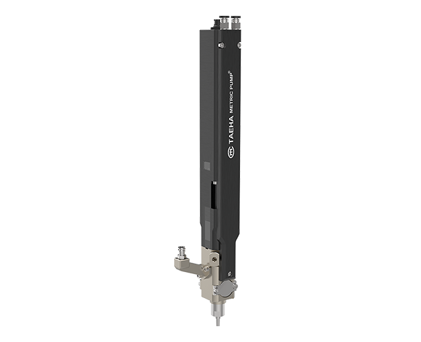 Volumetric pump engineered for durability against strong chemicals such as sulfuric acid, MEK, and acetone.