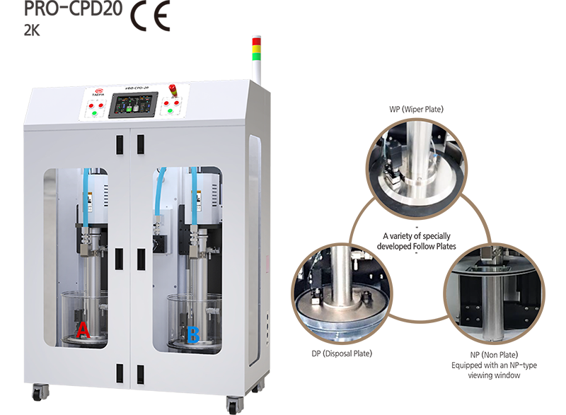 The PRO-CP Series supplies material directly from containers (PAIL, HOBBOCK) as is, ensuring stable material supply without contamination or air bubbles.